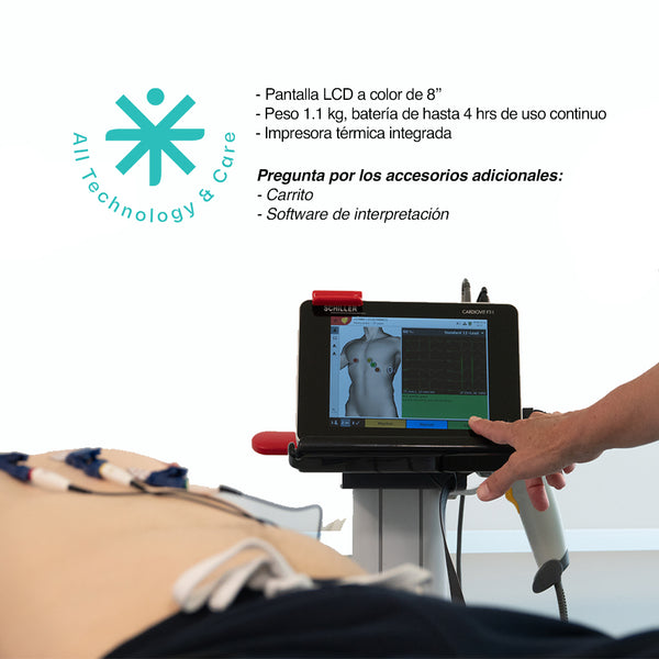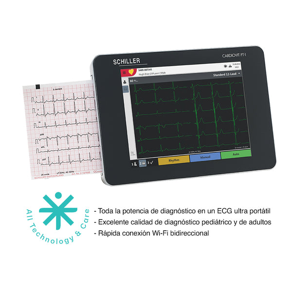 El electrocardiógrafo CARDIOVIT FT-1 de SCHILLER es un ECG portátil de 12 canales que otorga una alta calidad diagnóstica y posee una pantalla táctil a color de 8 pulgadas. Su guía de tres pasos intuitiva hace del FT-1 un equipo fácil de usar.